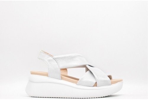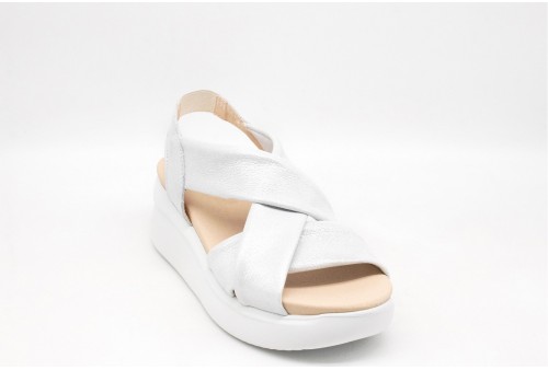 CALLAGHAN SANDALO donna in pelle. Sandalo con zeppa da infilare. Realizzata in morbida pelle. Inserto elastico sul retro per facilitare la calzata. Tecnologia ADAPTACTION. COLORE: argento