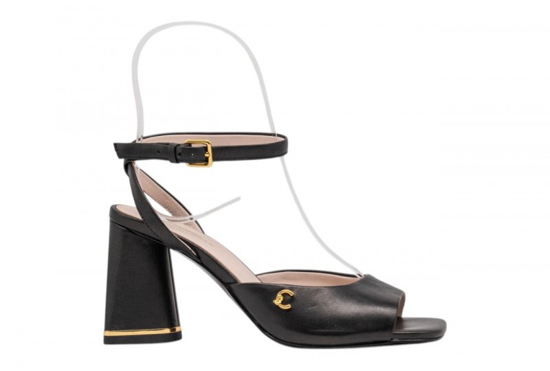 COCCINELLE SANDALO E4U1L180201 001 C-EVERYDAY NOIR. Elemento iconico della linea è il tacco chuncky che, ispirato al nostro iconico plettro e impreziosito dal metallo, ne esalta i profili, rendendolo un segno distintivo di stile. Le tomaie, dal design essenziale ed elegante, trovano equilibrio nella punta quadrata e dolce, pensata per accompagnare la donna con comodità durante l’intera giornata. A completare lo stile, il logo C-me, che celebra ancora una volta la fusione tra il plettro e l’identità del brand. Questo modello è realizzato in pellame liscio, morbido al tatto.