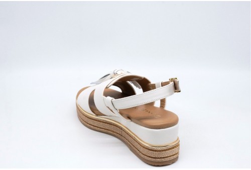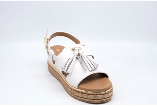 DONNA SERENA SANDALO CO N ZEPPA. Sandalo con zeppa realizzato in pelle con dettaglio nappine. Chiusura alla caviglia con cinturino regolabile. COLORE: bianco