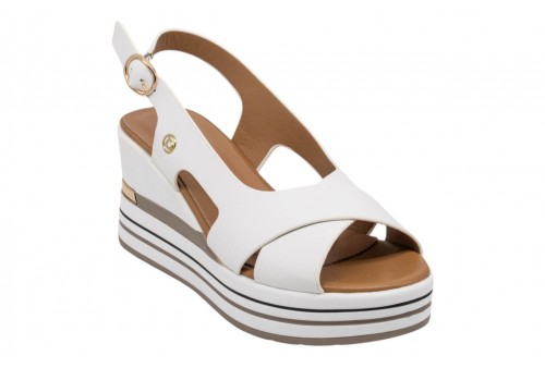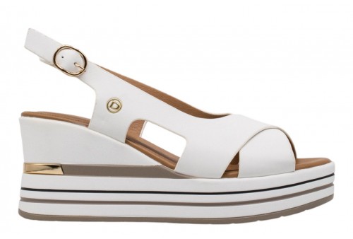 DONNA SERENA sandalo con zeppa 156078DM BIANCO. Sandalo con zeppa realizzato in pelle con fasce incrociate. Plantare imbottito. Chiusura con cinturino con fibbia regolabile alla caviglia.