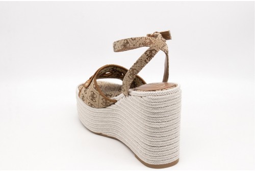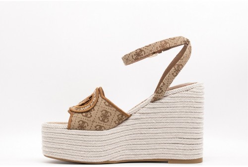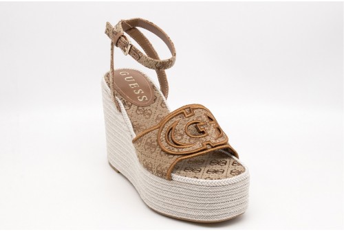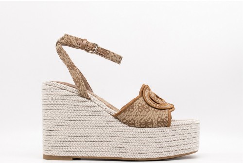 GUESS Sandalo Tanvee 4G logo. Sandalo in materiale sintetico con tacco in corda intrecciata.