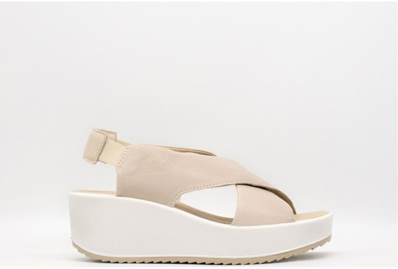 IGI & CO Sandali con zeppa in pelle. Questi sandali in morbida pelle hanno fasce ad incrocio sul davanti ed un elastico posteriore per adattarsi naturalmente al piede. Comodi da indossare, si abbinano con facilità ai tuoi look estivi. Queste calzature sono realizzate interamente in pelle ed anche il sottopiede è rivestito in pelle per offrire un appoggio naturale e confortevole. La suola a zeppa è leggerissima ed offre stabilità mentre isola dalle asperità del suolo. COLORE: BEIGE