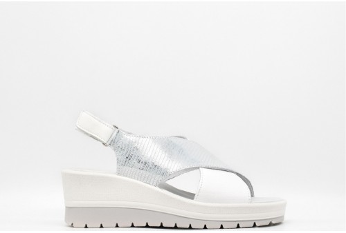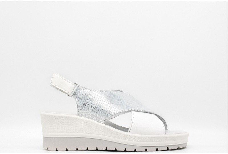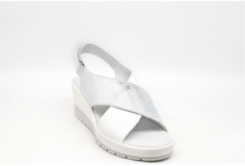 IGI & CO Sandalo con zeppa in pelle. Questi sandali in morbida pelle hanno fasce ad incrocio sul davanti, chiusura con strappo. Comodi da indossare, si abbinano con facilità ai tuoi look estivi. Queste calzature sono realizzate interamente in pelle ed anche il sottopiede è rivestito in pelle per offrire un appoggio naturale e confortevole. La suola a zeppa è leggerissima ed offre stabilità mentre isola dalle asperità del suolo. COLORE: arg