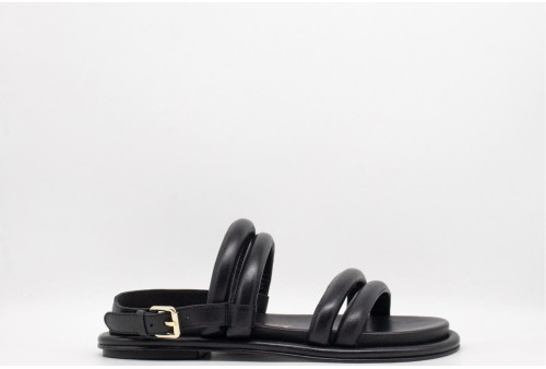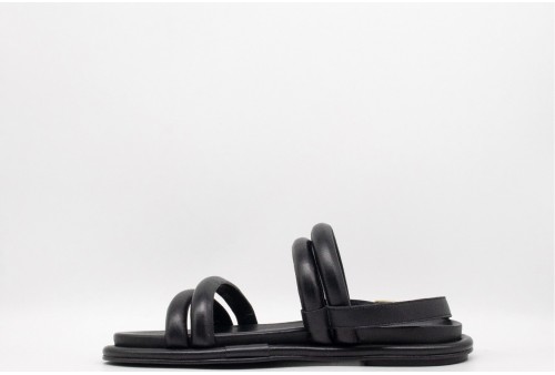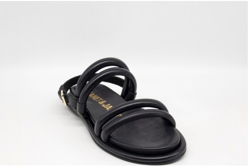 JANET&JANET SANDALO BASSO IN PELLE. Sandalo basso realizzato in pelle con listini. Chiusura con cinturino con f ibbia alla caviglia. COLORE: NERO