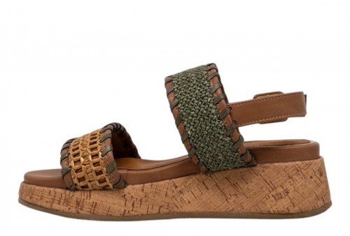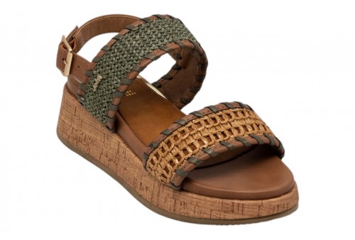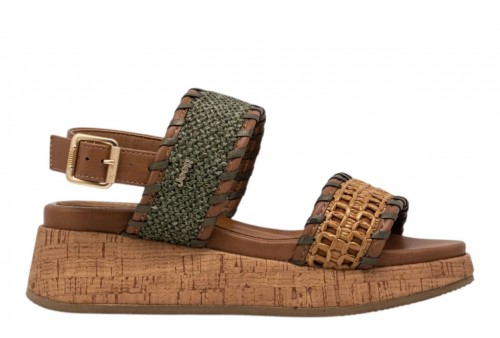 JEEP donna JL61591A 020 KARINA RAFFIA MILITARY.Sandalo con zeppa realizzato in pu. Due fasce in rafia. Chiusura con cinturino regolabile alla caviglia.