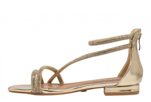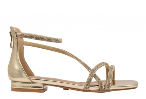 KHARISMA sandalo elegante 2305.26 LAMINATO platino. Sandalo elegante flat realizzato in PU impreziosita da listini con strass. Chiusura con zip al tallone.