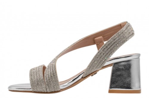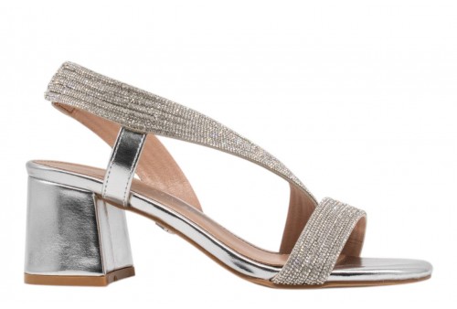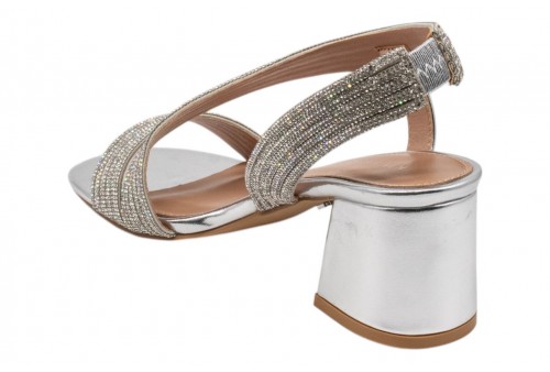 KHARISMA sandalo elegante 2510.26 STRASS ARGENTO. Sandalo elegante realizzato in PU impreziosito da listini con strass.Tacco a blocco.