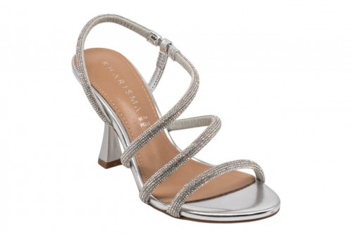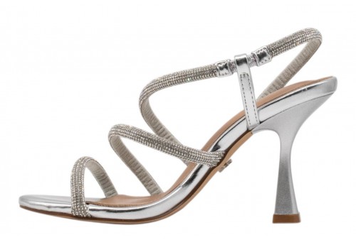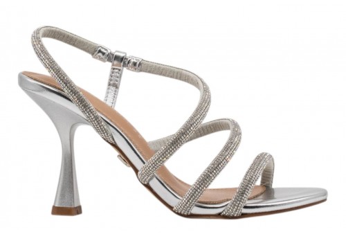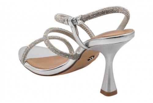 KHARISMA sandalo elegante 2581.26 LAMINATO ARGENTO. Sandalo elegante realizzato in PU impreziosito da listini con strass.Tacco alto a rocchetto.
