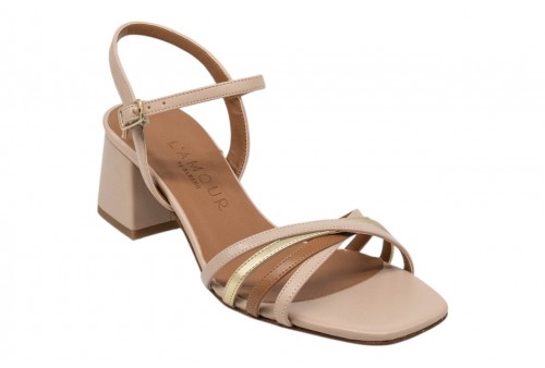 L'AMOUR L413 SANDALO SOFT NUDE. Sandalo realizzato in pelle caratterizzato da listini multicolor incrociati. Chiusura con cinturino con fibbia regolabile alla caviglia. Tacco a blocco.