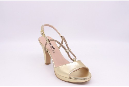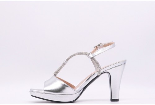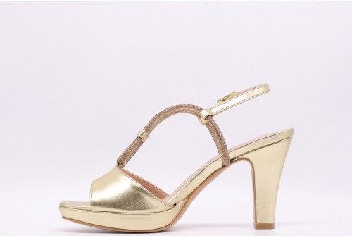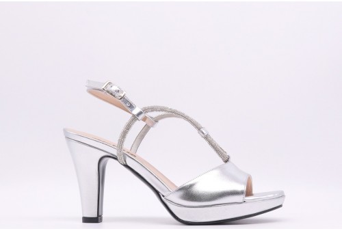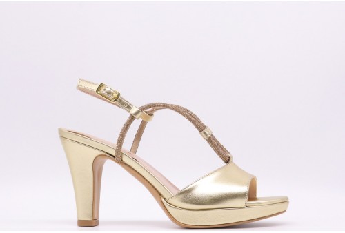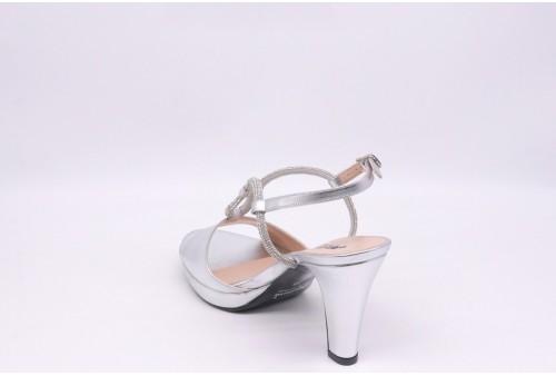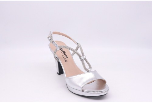 MELLUSO Sandalo donna elegante. Sandalo donna cerimonia caratterizzato da tomaia in pelle effetto laminato, tacco comodo e chiusura con cinturino con fibbia.