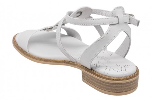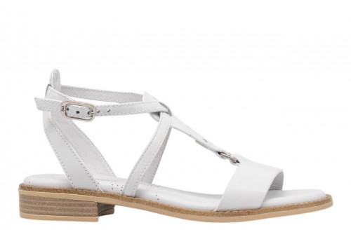 NERO GIARDINI sandalo basso E615895/707 LOIRA BIANCO. Sandalo flat realizzato in pelle con fasce. Chiusura con cinturino regolabile alla caviglia.