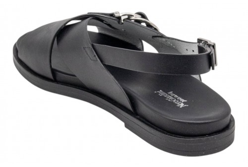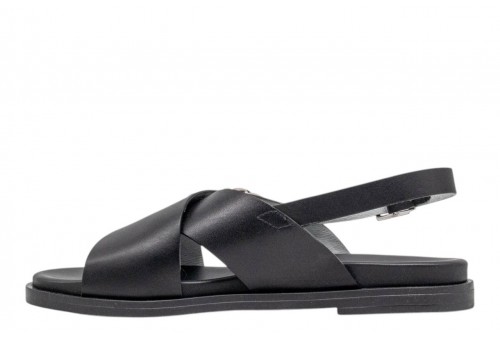 NERO GIARDINI sandalo basso E615933D/100 TAMIGI NERO. Sandalo flat realizzato in pelle con fasce incrociate e accessorio in metallo argento. Chiusura con cinturino regolabile alla caviglia.