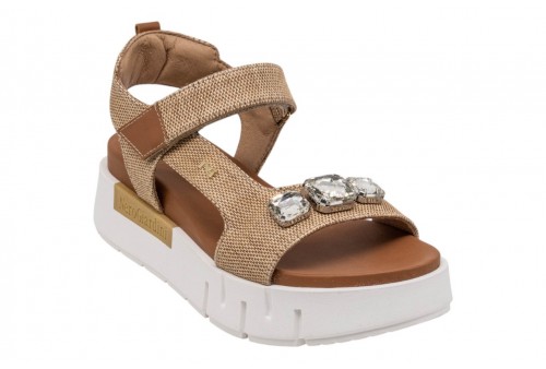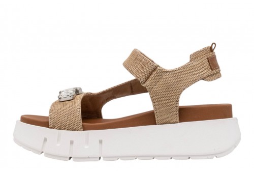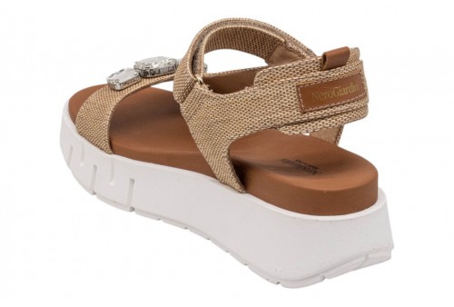 NERO GIARDINI sandalo con PLATFORM E617061D/420 PAGLIA NATURAL. Sandalo realizzato in tessuto con fasce impreziosite da applicazioni gioiello. Chiusura con cinturino regolabile con strappo alla caviglia.