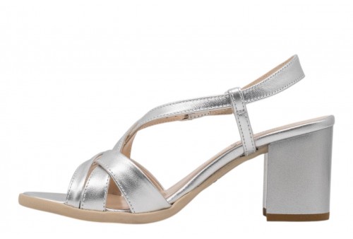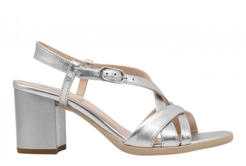 NERO GIARDINI sandalo donna E615753D/700 LAMINATO COL. ARG. Sandalo realizzato in pelle effetto laminato con fasce sottili. Chiusura con cinturino con fibbia alla caviglia.Tacco a blocco
