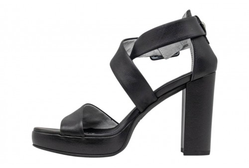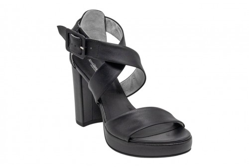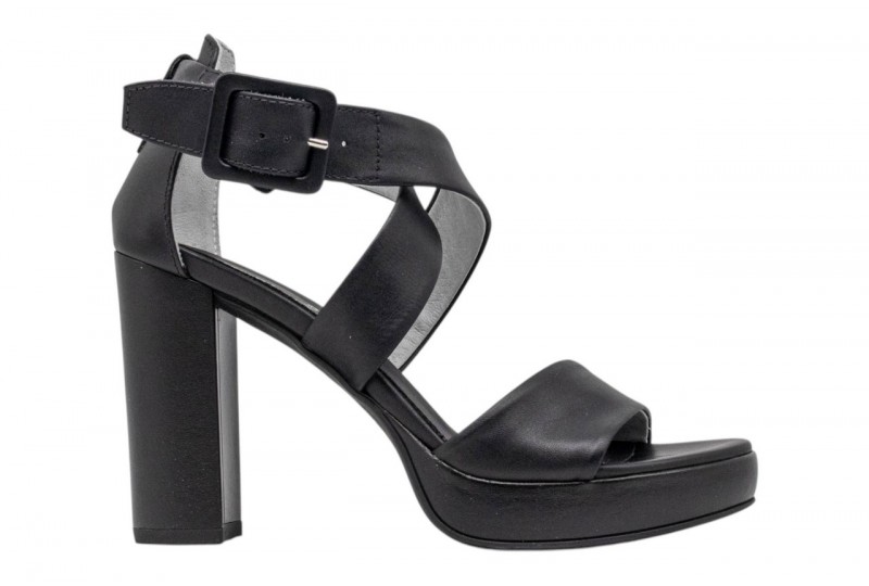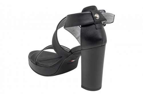 NERO GIARDINI sandalo donna E615800D/100 TAMIGI NERO. Sandalo realizzato in pelle con fasce. Tacco a blocco e platform. Chiusura con cinturino regolabile alla caviglia.