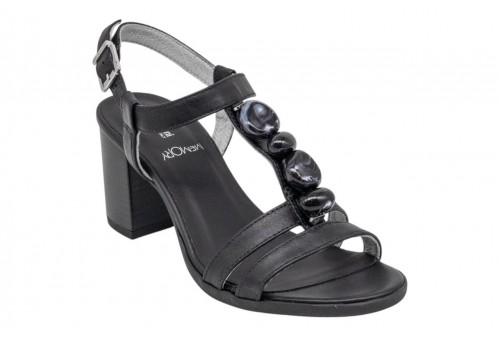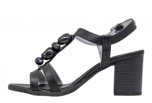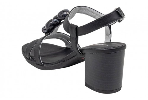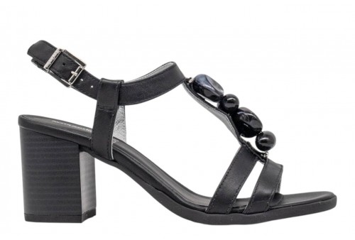 NERO GIARDINI sandalo donna E615860D/100 TAMIGI NERO. Sandalo realizzato in pelle, impreziosito da pietre tono su tono. Tacco a blocco. Chiusura con cinturino regolabile alla caviglia.