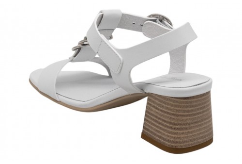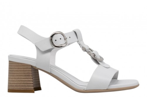 NERO GIARDINI sandalo donna E615870D/707 LOIRA COL. BIANCO. Sandalo realizzato in pelle, impreziosito da fibbietta decorativa in metallo argento.Tacco a blocco. Chiusura con cinturino regolabile alla caviglia.