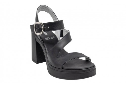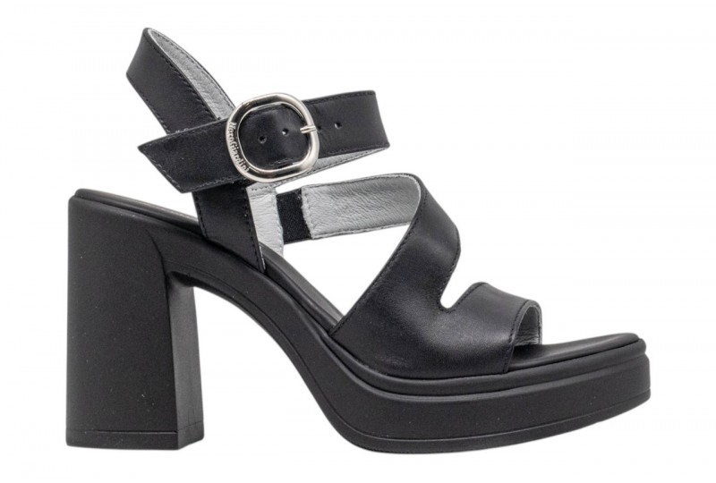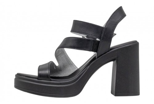 NERO GIARDINI sandalo donna E616080D/100 TAMIGI NERO. Sandalo con tacco alto e plateau realizzato in pelle ed impreziosito da fasce incrociate. Inserto elastico laterale. Chiusura con Cinturino regolabile con fibbia.