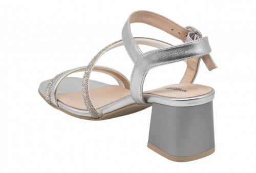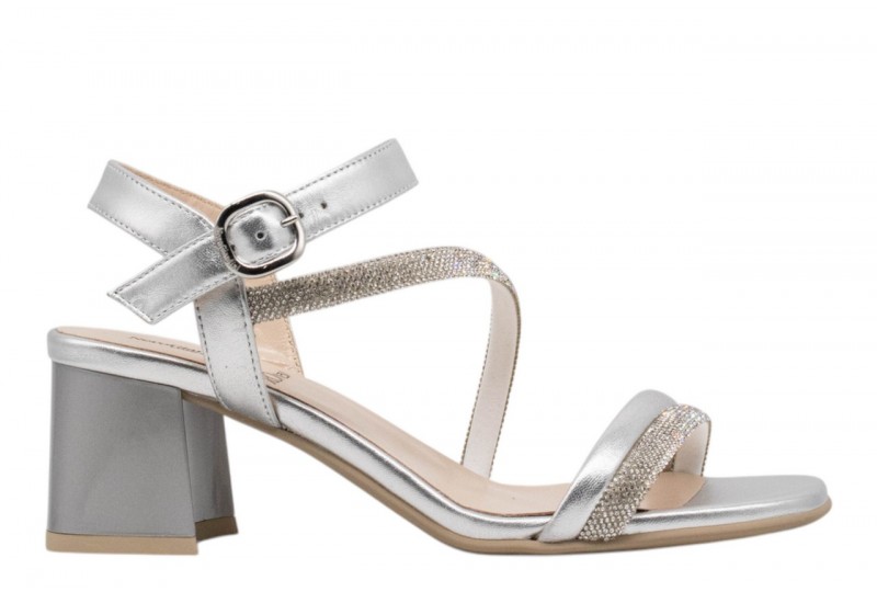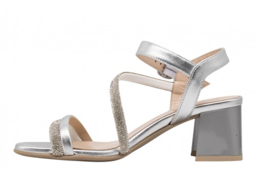 NERO GIARDINI sandalo elegante E615721D/700 NETTUNO ARG. Sandalo elegante realizzato in pelle laminata impreziosito da fasce con strass. Chiusura con cinturino con fibbia alla caviglia.Tacco a blocco