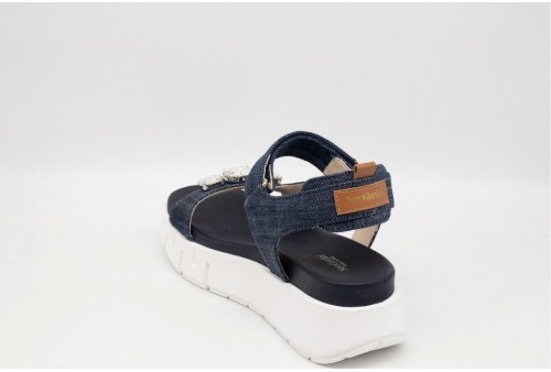 NERO GIARDINI SANDALO in denim. Sandalo con platform realizzato in pelle con inserti in denim. Accessorio gioiello frontale. Chiusura con strappo. COLORE: jeans