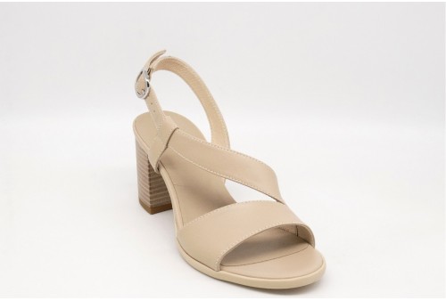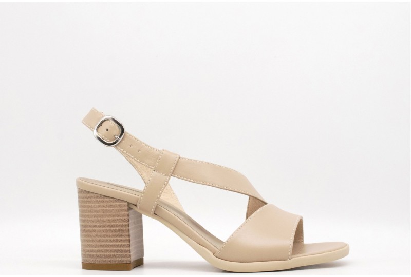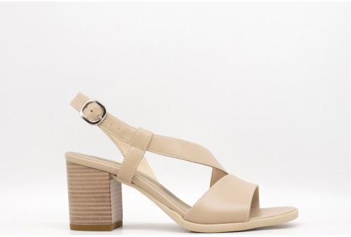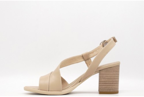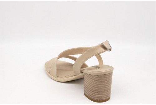 NERO GIARDINI SANDALO IN PELLE. Sandalo realizzato in pelle con fasce. Chiusura con cinturino con fibbia alla caviglia. Tacco a blocco. COLORE: lino