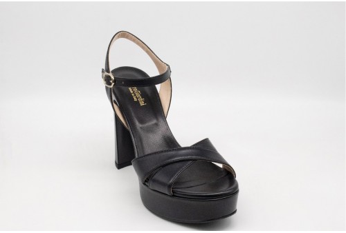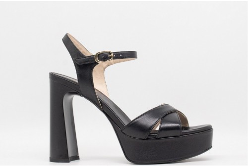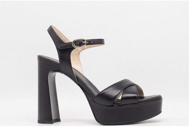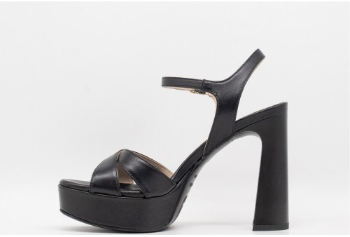 NERO GIARDINI SANDALO PLATFORM. Sandalo realizzato in pelle liscia con listini incrociati. Chiusura con cinturino con fibbia alla caviglia. Tacco a blocco. COLORE: NERO