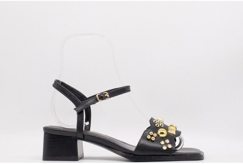 NOA HARMON UNNA. Sandalo con tacco quadrato basso e fibbia Noa Harmon. UNNA, con le sue borchiette in rilievo color oro, ti porterà solo buone vibrazioni.