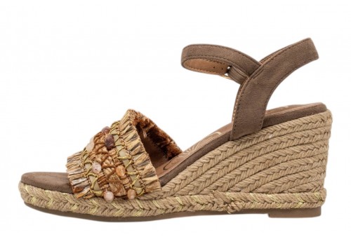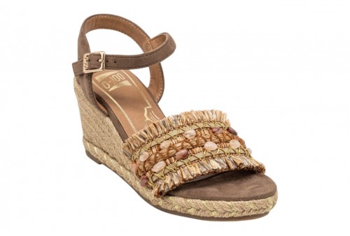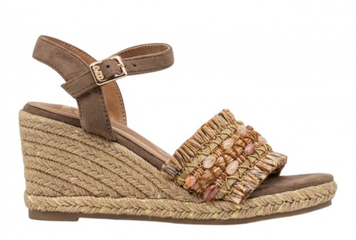 O-JOO sandalo con zeppa OL61500A GERI FLOWER NATURAL. Sandalo con zeppa in iuta realizzato in ecopelle scamosciata e impreziosito da fascia con applicazioni gioiello.Chiusura con cinturino regolabile con fibbia alla caviglia.
