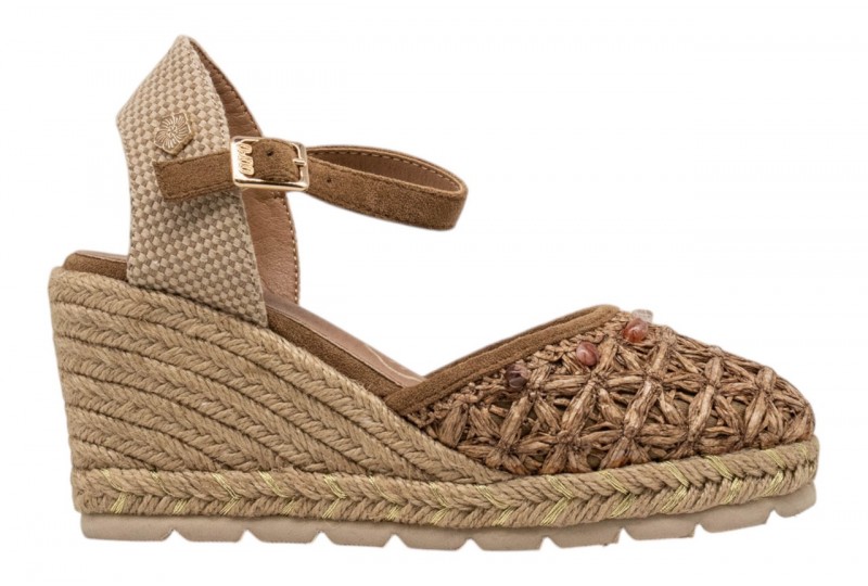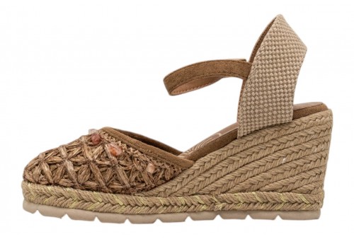 O-JOO sandalo con zeppa OL61501A GERI FLOWER NATURAL. Sandalo con zeppa in iuta realizzato in Pu con punta chiusa impreziosita da applicazioni gioiello.Chiusura con cinturino regolabile con fibbia alla caviglia.