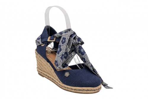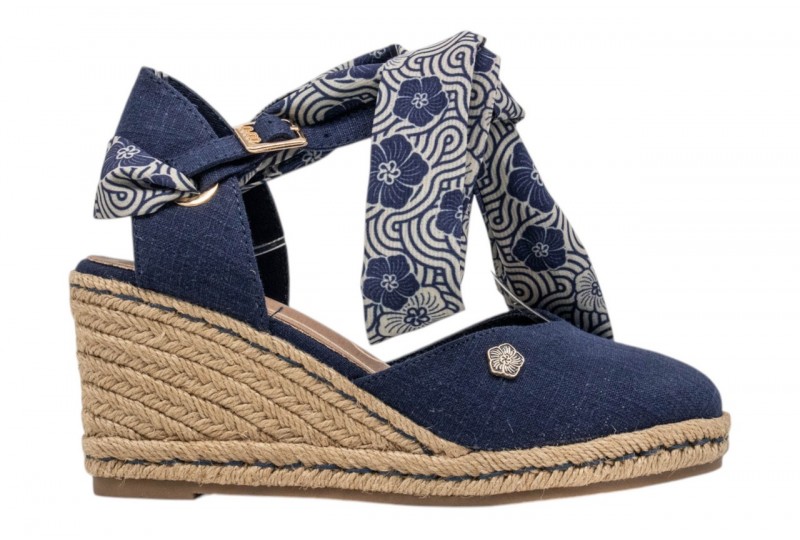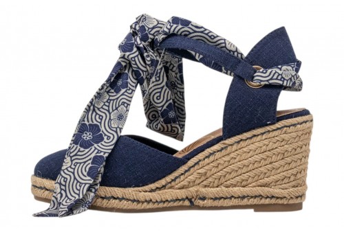 O-JOO SANDALO CON ZEPPA OL61531A GERI CVS NAVY. Sandalo con zeppa in iuta realizzato in tessuto con punta chiusa. Foulard decorativo alla caviglia. Chiusura con cinturino regolabile con fibbia alla caviglia.