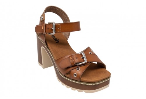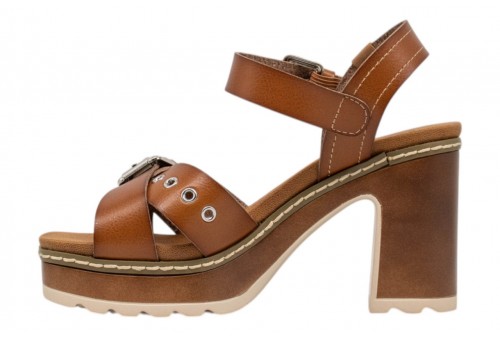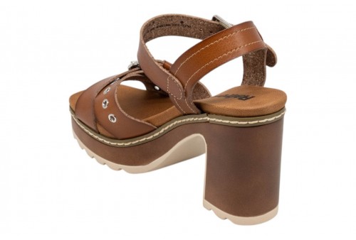 REFRESH SANDALO 175290 S.C. CAMEL. Sandalo realizzato in materiale sintetico caratterizzato da listini incrociati con fibbia decorativa. Tacco a blocco. Chiusura con cinturino regolabile alla caviglia.