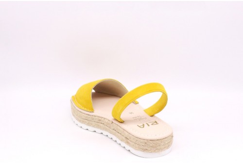 RIA MENORCA SANDALO DONNA Questi sandali minorchini dal design esclusivo sono ideali per qualsiasi look estivo. La pala è realizzata in rafia, con una combinazione di colori ideale e una piattaforma di iuta marrone di tre centimetri. Questa copertina diventerà la tua alleata estiva.