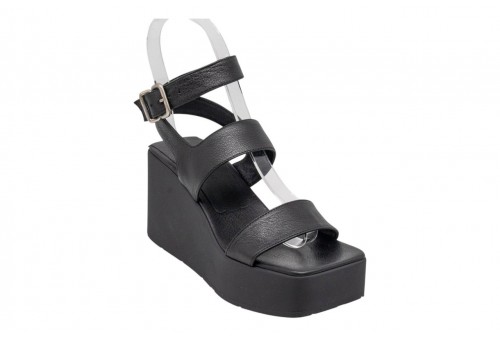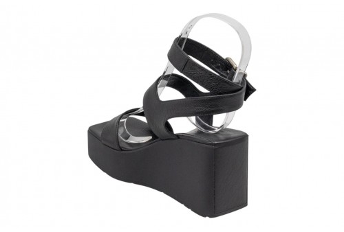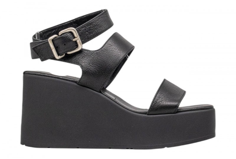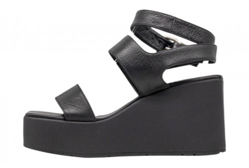 VIC MATIE' SANDALO CON ZEPPA 1K5456D_K10C070101 BLACK. Sandalo con zeppa, realizzato in pelle. Punta quadrata. Chiusura con cinturino regolabile con fibbia alla caviglia.