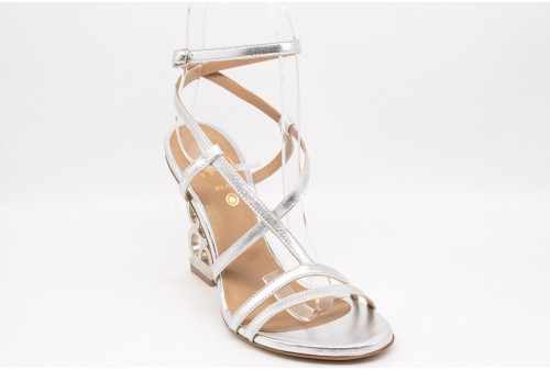 WO MILANO Sandalo donna sirio argento. Sandalo donna del brand Wo Milano, realizzate in Italia con materiali di alta qualità. Tomaia caratterizzata da listini in pelle argento, tacco dalla forma wow.