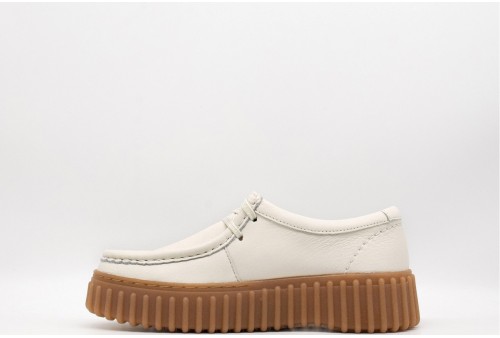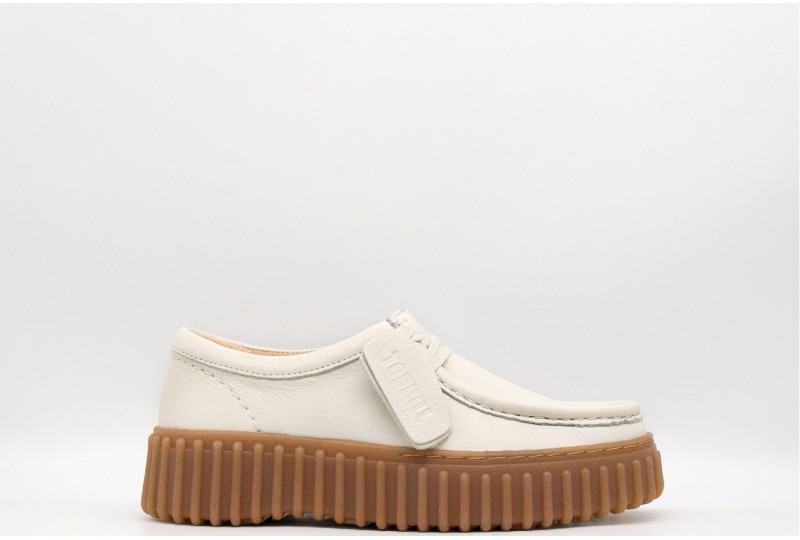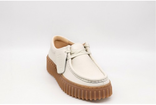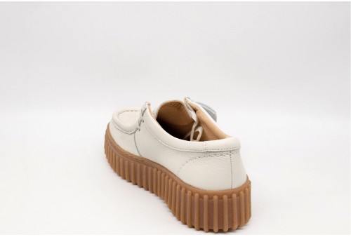 CLARKS TORHILL BEE LEATHER. Polacchino in pelle pregiata con due fori. Impunture.Plantare in countur cushion in pelle sagomata estraibile. Suola scanalata in termoplastica con inserto in EVA. COLORE: OFF WHITE