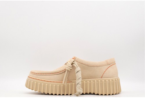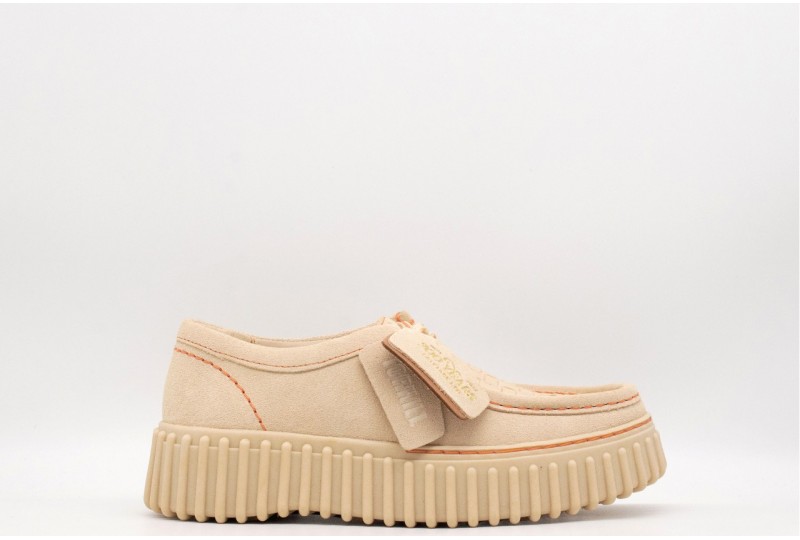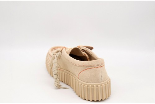 CLARKS TORHILL BEE SUEDE. Polacchino in pelle scamosciata pregiata con due fori. Impunture.Plantare in countur cushion in pelle sagomata estraibile. Suola scanalata in termoplastica con inserto in EVA. COLORE: ECRU