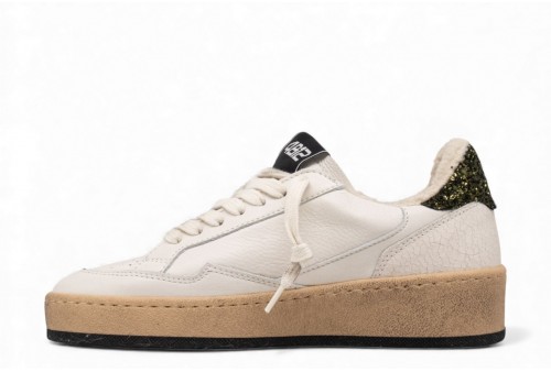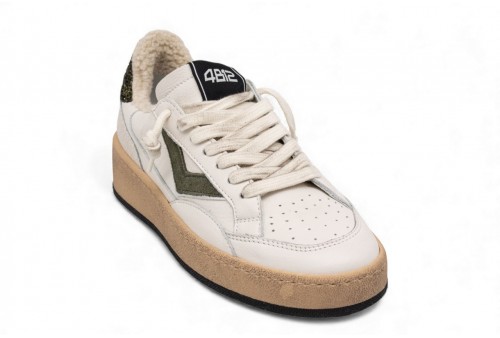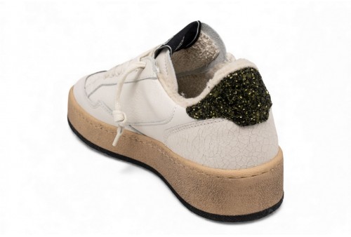 4B12 DONNA SNEAKER PLAYNEW SKY. Sneakers realizzata in pelle bianca con dettaglio laterale in pelle scamosciata. Spoiler glitterato.Linguetta con label logata. Fodera in tessuto effetto teddy.