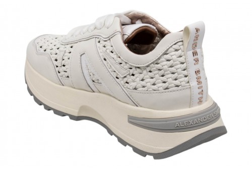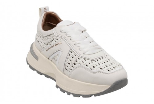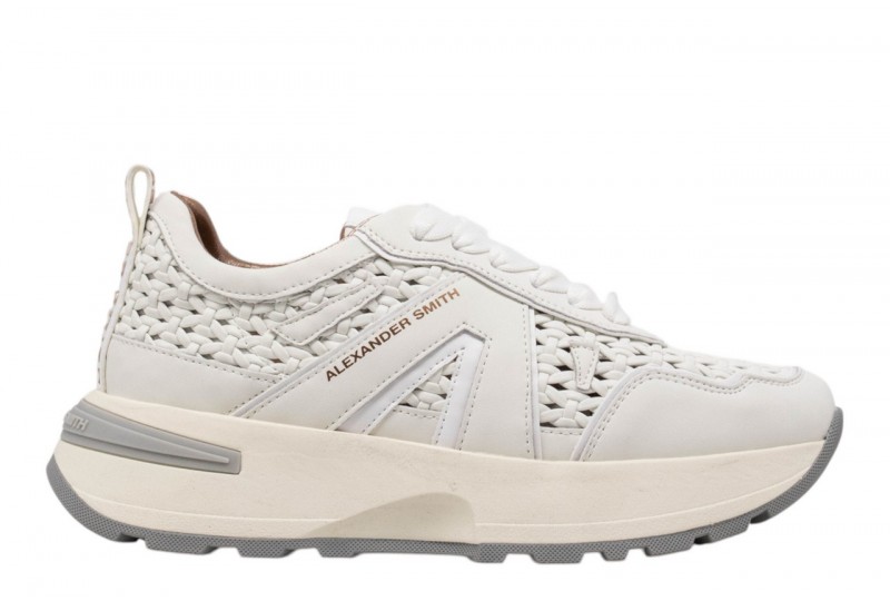 ALEXANDER SMITH DONNA LPW2211TWT LIVERPOOL WHITE. Sneaker in pelle bianca con inserto intrecciato. l nuovo modello firmato Alexander Smith, che prende ispirazione da una delle città più iconiche del Regno Unito, è la nuova proposta running del brand: linea affusolata, suola importante e dettagli ricercati danno vita ad una sneakers versatile e distintiva.
