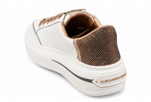 ALEXANDER SMITH Lancaster Donna in pelle con microborchie.Il modello prende il nome da Lancaster Gate, zona del centro di Londra adiacente ai Kensington Gardens: un’area residenziale in cui lo stile classico e barocco delle abitazioni si fonde con i resti di una chiesa Gotica del 1800. Con lo stesso perfetto mix di stili, la Lancaster di Alexander Smith è un match tra i dettagli preziosi e ricercati della tomaia e degli occhielli, con l’audacia e l’importanza della suola, per uno stile che combina eleganza e unicità, in perfetta sintonia con l’anima del brand, in questa variante in pelle bianca e tallone con microborchie.Soletta interna removibile.Logo a lato e sul retro. COLORE: white/beige