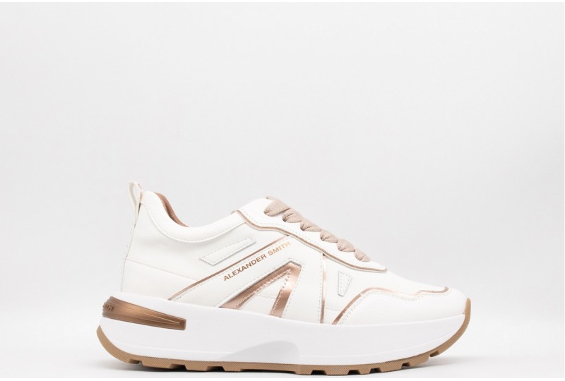 ALEXANDER SMITH SNEAKER LIVERPOOL. Sneaker dalla linea affusolata, suola importante e dettagli ricercati danno vita ad una sneaker versatile e distintiva. Realizzata in pelle e nylon. Logo laterale e al tallone. Inserto laterale in pelle metallizzata a contrasto.Colore: White/co