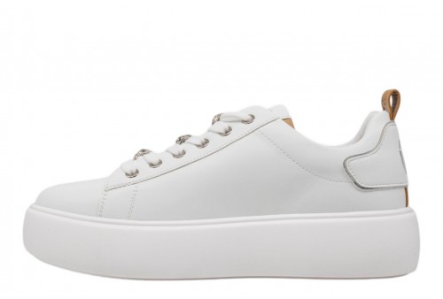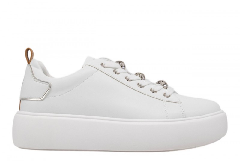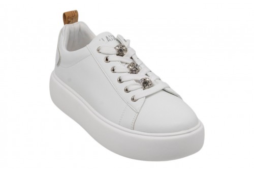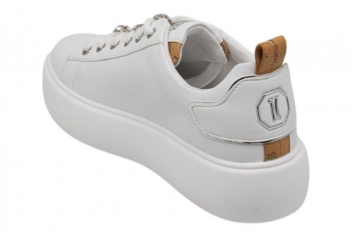 ALVIERO MARTINI donna sneaker 1462/300E/0900 WHITE. Sneaker realizzata in pu bianco. Passalacci gioiello. Spoiler a contrasto. Logo1C al tallone. Linguetta geo con label logata. Platform 4cm.