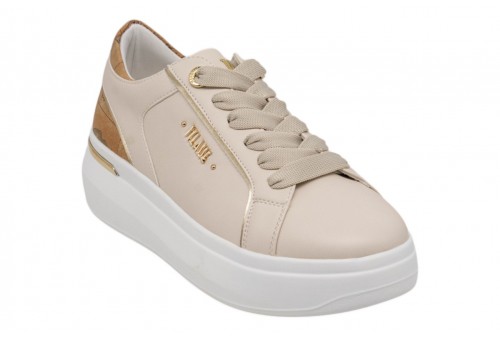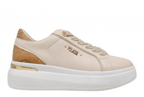 ALVIERO MARTINI donna sneaker 1470/300E/0925 BEIGE. Sneaker realizzata in pu beige con logo laterale dorato. Spoiler a contrasto geo. Platform 4cm.