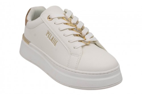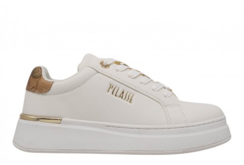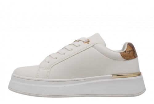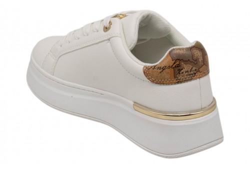 ALVIERO MARTINI donna sneaker 2427/0289/X013 WHITE/BEIGE GEO. Sneaker platform realizzata in pu white con logo lettering laterale . Passalacci gioiello in metallo dorato con strass. Spoiler in ecopelle geo.
