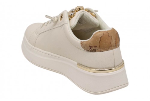 ALVIERO MARTINI donna sneaker 2428/0289/A630 off WHITE/BEIGE GEO. Sneaker platform realizzata in pu . Linguetta con applicazioni gioiello. Spoiler in ecopelle geo.