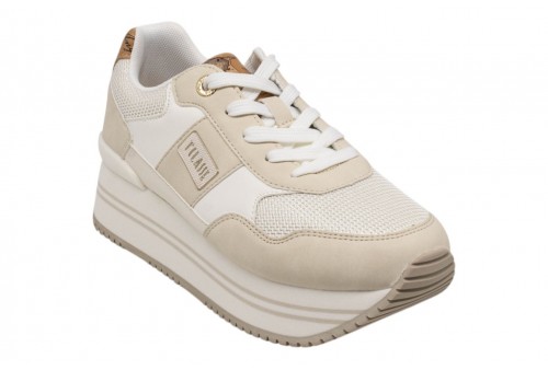 ALVIERO MARTINI DONNA SNEAKER 2442/1597/Y615 BEIGE/WHT/BEIGE . Sneaker realizzata in eco pelle liscia beige con inserti in tessuto. Logo lettering laterale. Spoiler geo beige. Linguetta a contrasto geo beige. Fondo platform in gomma.