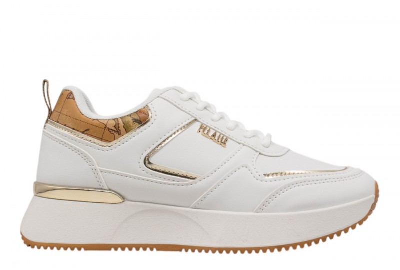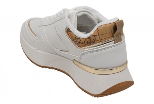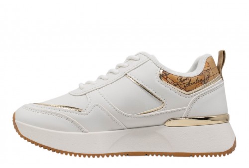 ALVIERO MARTINI donna sneaker 1477/300E/0387 WHITE. Sneaker modello running realizzata in pu bianca. Logo laterale dorato. Spoiler geo. Inserti laminati dorati.