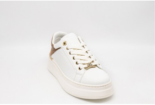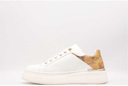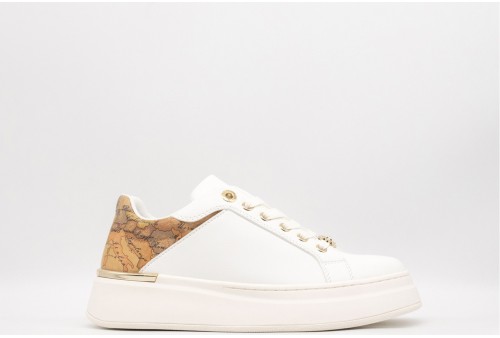 ALVIERO MARTINI SNEAKER . Sneaker realizzate in pelle bianca con stampa Geo Classic al tallone. Applicazioni gioiello sui lacci. Chiusura con stringhe. Sottopiede in pelle estraibile. Punta rotonda. Colore: bianco