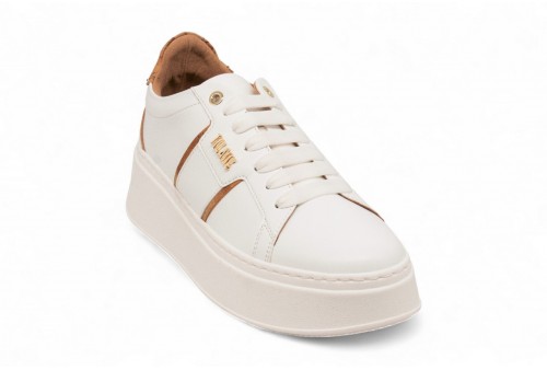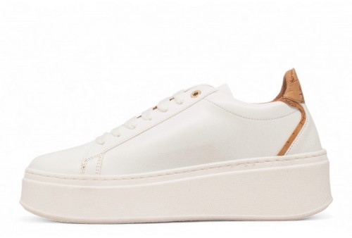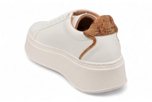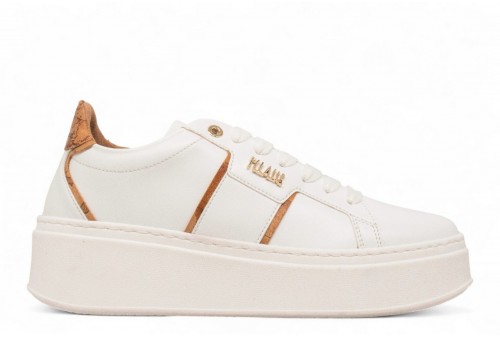 ALVIERO MARTINI Sneaker in eco nappa con logo . Sneaker in effetto nappa con logo 1 classe. Inserto posteriore in tessuto effetto nappa stampa Geo Classic e platform di 6 cm. COLORE: BIANCO
