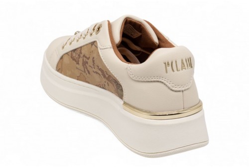 ALVIERO MARTINI SNEAKERS GIOIELLO. Sneakers realizzata in eco nappa con dettaglio geo leather. Spoiler tono su tono con logo lettering. Passalacci gioiello. Fondo platform. COLORE: OFF WHITE
