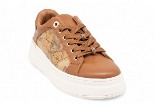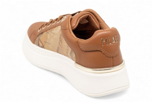 ALVIERO MARTINI SNEAKERS GIOIELLO. Sneakers realizzata in eco nappa con dettaglio geo leather. Spoiler tono su tono con logo lettering. Passalacci gioiello. Fondo platform. COLORE:  LEATHER/BEIGE